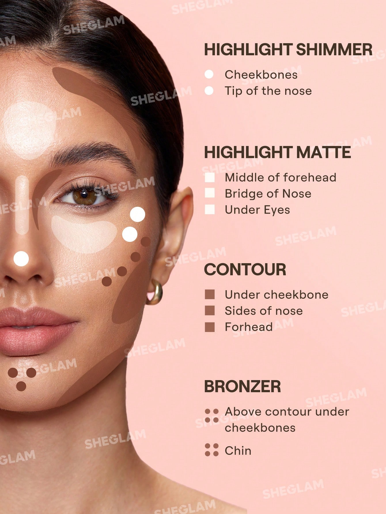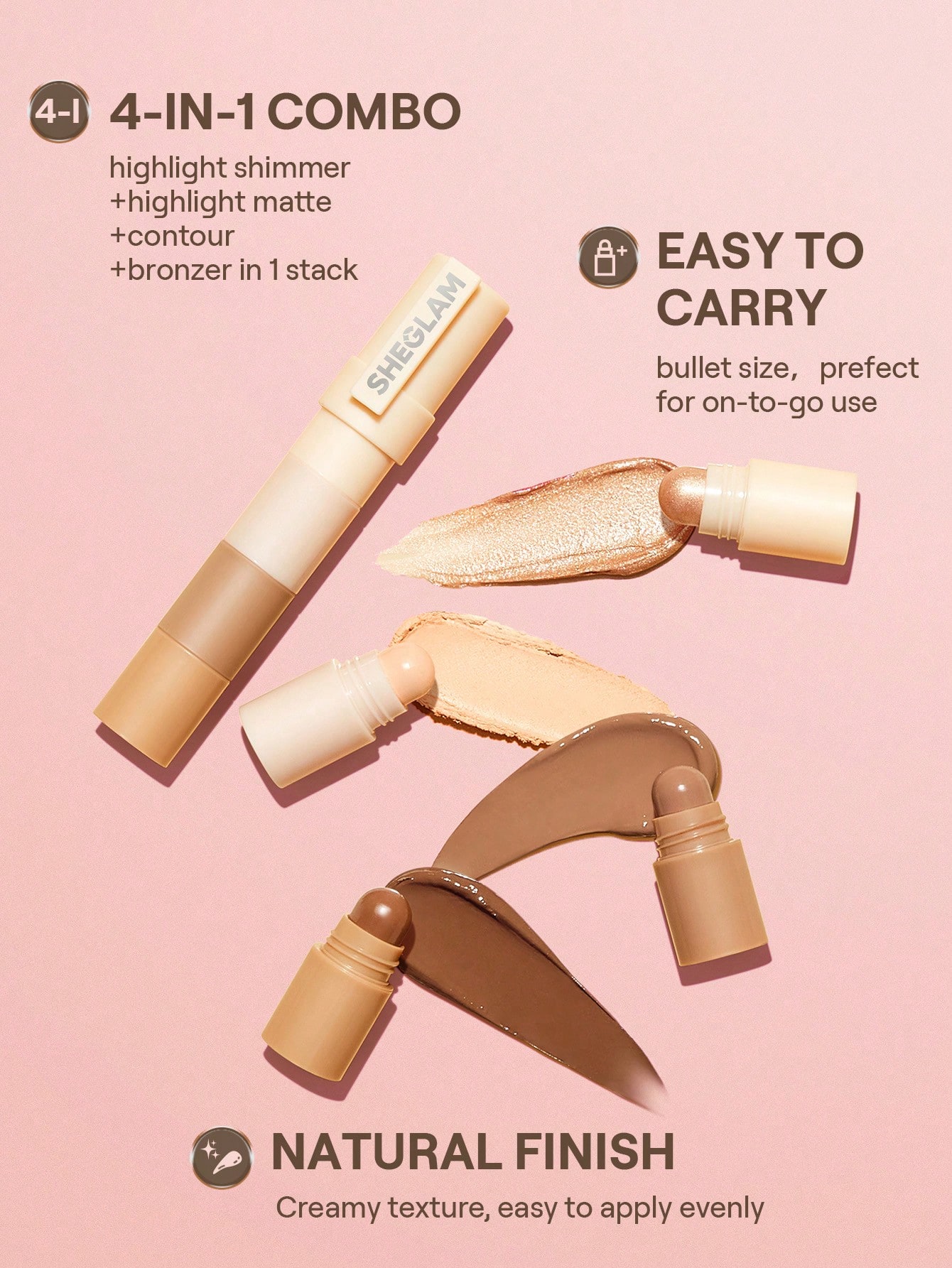 محصول Multi-Glam Face Pen-Medium از برند SHEGLAM یک ابزار آرایشی ۴ در ۱ است که شامل هایلایتر براق، هایلایتر مات، کانتور و برنزر میباشد. این طراحی قلمی و شیک به شما امکان میدهد بهراحتی و با دقت بالا آرایش کنید.